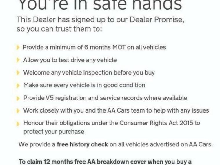 To add to your peace of mind, we offer a 3-month warranty, 12 months of AA Breakdown Cover, and a minimum 6 months of both MOT and service. Your satisfaction and the longevity of your investment are our top priorities.