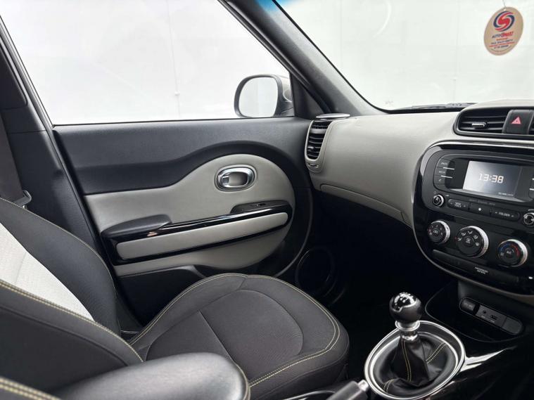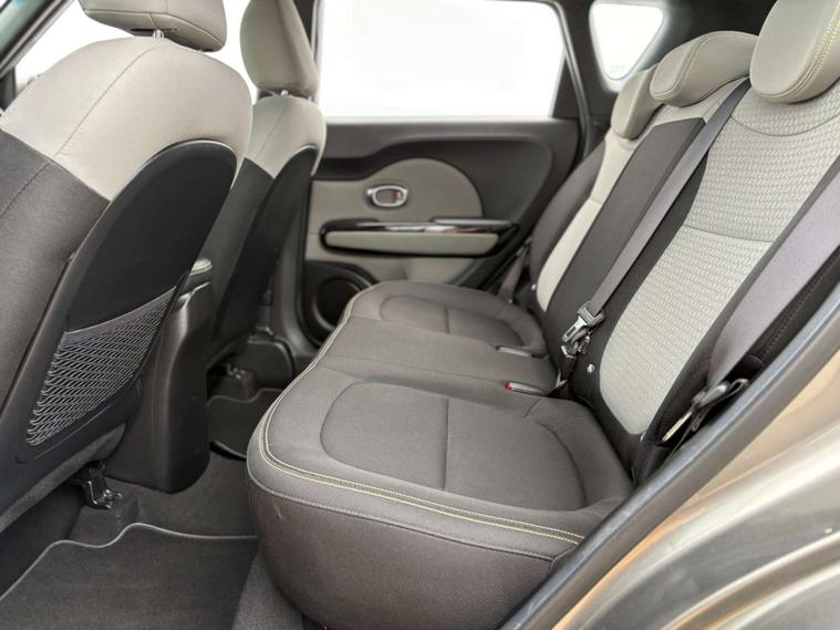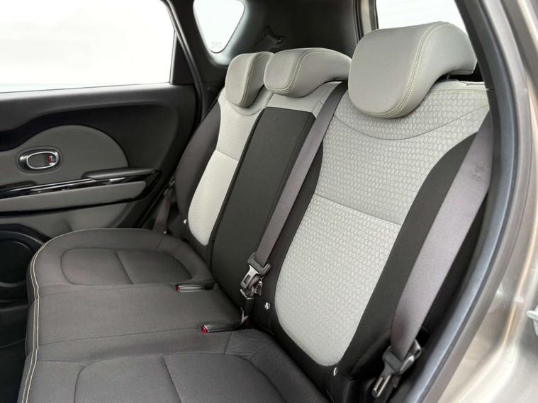 This particular Kia Soul stands out with its sleek Titanium Silver finish, exuding a modern and sophisticated aura. The exterior's striking design is complemented by the unique Two-Tone Woven Cloth interior in Grey and Black, accentuated with eye-catching Yellow Stitching. This combination not only adds a touch of flair but also ensures a comfortable and stylish ride for both driver and passengers.