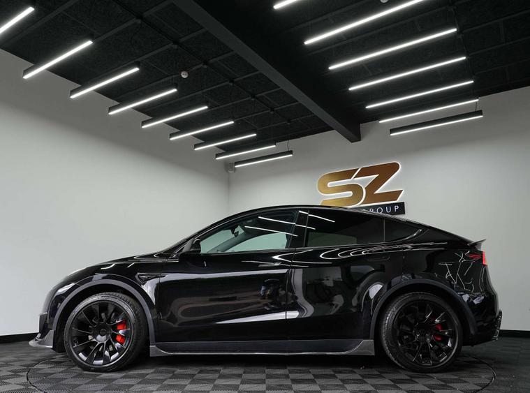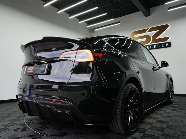 SZ MotorGroup Nottingham are pleased to offer this stunning Tesla Model Y Dual Motor Long Range Auto AWD, REGISTRATION GJ22 OBS. Presented in excellent condition throughout, this example benefits from a full carbon bodykit, 20” black alloy wheels, and a full black exterior pack, giving the vehicle a sharp, modern, and highly desirable road presence.