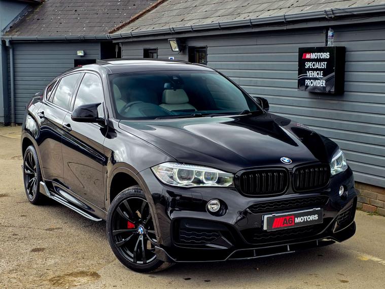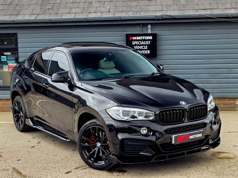 BMW X6 FINISHED IN INDIVIDUAL PAINT RUBY BLACK BOASTING HUGE SPEC FROM FACTORY INCLUDING SUN ROOF, REAR VIEW CAMERA, HARMAN KARDON SOUND, TWO TONE LEATHER INTERIOR, DIGITAL COCKPIT AND MUCH MORE. COMES WITH PERFORMANCE BODYKIT IN GLOSS BLACK AND MUST BE SEEN TO BE FULLY APPRECIATED. HERE AT A6 MOTORS WE PRIDE TO DELIVER GREAT CARS & A BETTER SERVICE. WE HAND PICK OUR CARS AND THEY ARE SUBJECT TO DETAILED CHECKS PRIOR TO SALE.WE ALSO PROVIDE A LONG MOT SO BUY WITH CONFIDENCE. 6, 12, 24 & 36 MONTHS EXTENDABLE WARRANTY AVAILABLE & THE OPTION OF DRIVE AWAY INSURANCE. ALL DEALER FACILITY ARE OFFERED & WE ARE OPEN 7 DAYS A WEEK. GREAT FINANCE PACKAGE AVAILABLE SO PLEASE INQUIRE WITH US. WE HAVE A DEDICATED AFTER SALES TEAM TO ASSIST WITH POST SALE INQUIRIES. LOCATED CONVENIENTLY IN BARTON LE CLAY BETWEEN LUTON & BEDFORD ON THE A6 BARTON ROAD, MK45 4RA. WE ARE EASY ACCESIBLE VIA THE M1 MOTORWAY. WE AIM TO BE BEDFORSHIRES MOST COMPETITIVE DEALERSHIP. FINANCE FROM A THIRD PARTY COMPANY WILL BE SUBJECT TO A £399 ADMINISTRATION FEE. PLEASE CONFIRM WITH A MEMBER OF STAFF FOR AN ACCURATE SPEC LIST AS THE DATA IS PULLED FROM AUTOTRADER AND NOT ALWAYS CORRECT