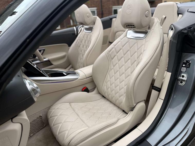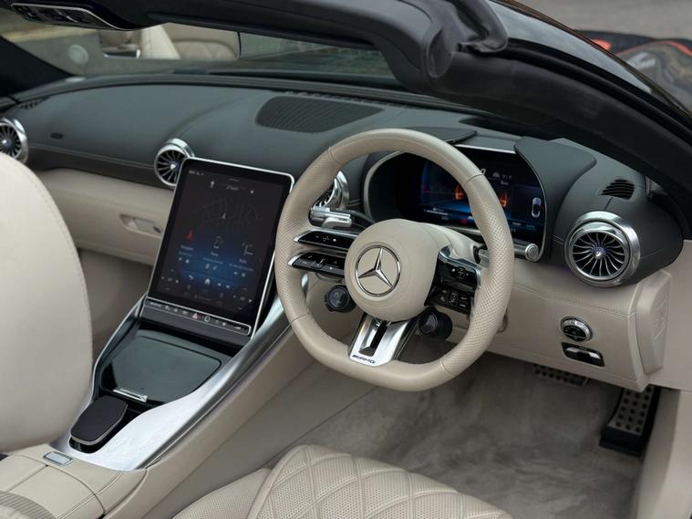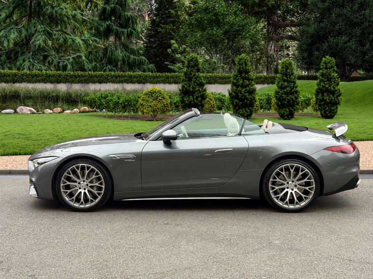 Finished in a sleek and sophisticated grey, the Mercedes-Benz SL commands attention with its timeless design and elegant presence. Every curve and contour of this masterpiece has been meticulously crafted to embody the perfect blend of style and aerodynamics.