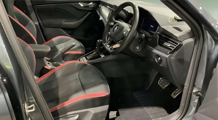 Finished in a sophisticated Grey colour, the Skoda Kamiq exudes elegance and class. The addition of the Monte Carlo-Cloth in Black adds a touch of sporty flair to the interior, making every drive a pleasure.