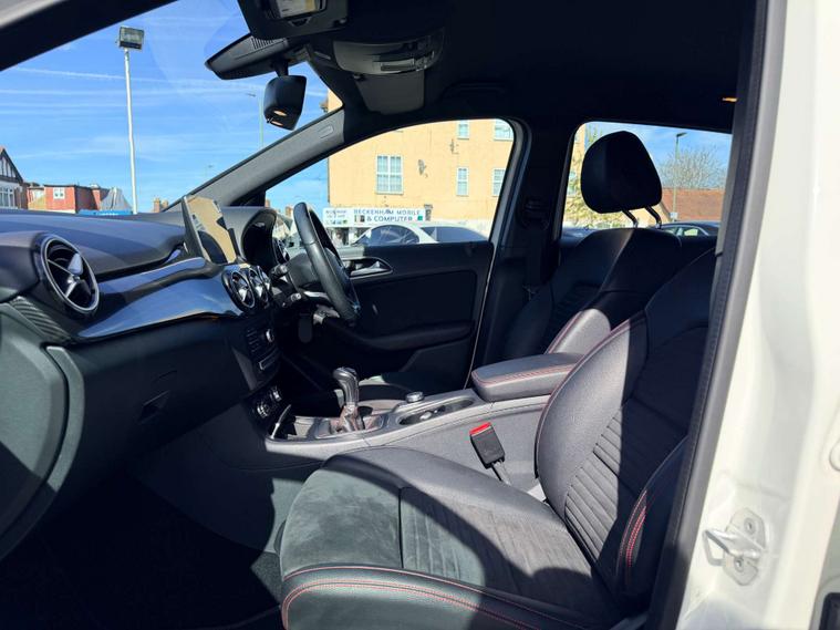 Finished in a striking Cirrus White, the B-Class exudes elegance and style, turning heads wherever it goes. The sleek exterior is perfectly complemented by the luxurious interior, featuring Artico Leather-Dinamica Microfibre in Black, accentuated with eye-catching red contrast stitching. This is a car that doesn’t just promise comfort; it delivers it in spades.