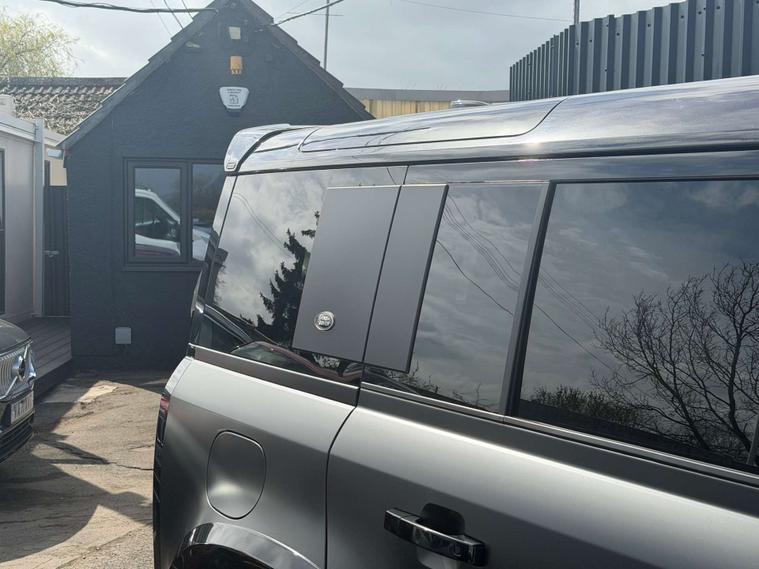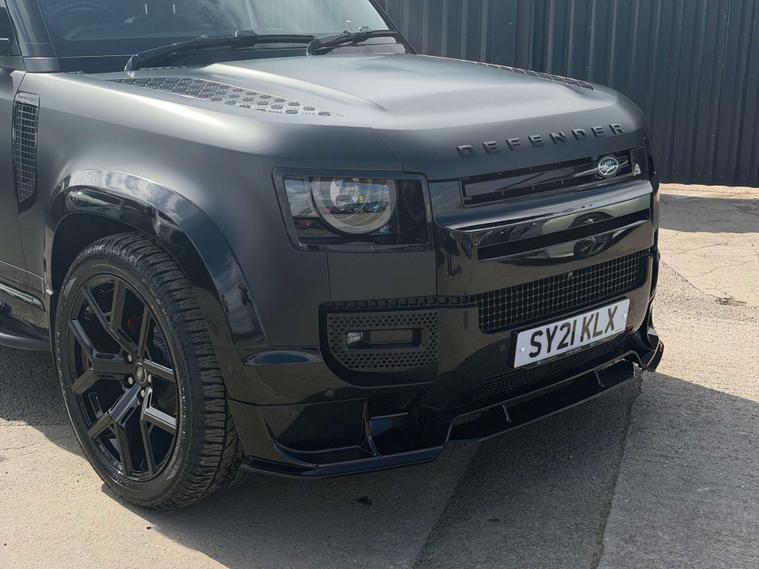 Finished in a brand new matte black wrap fitted in late 2025, this Defender looks absolutely superb and has a seriously aggressive stance. It has also been upgraded with a Hawke front splitter / lower front bumper extension, one of the boldest designs on the market and a world away from the usual cheap aftermarket add-ons.