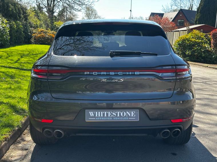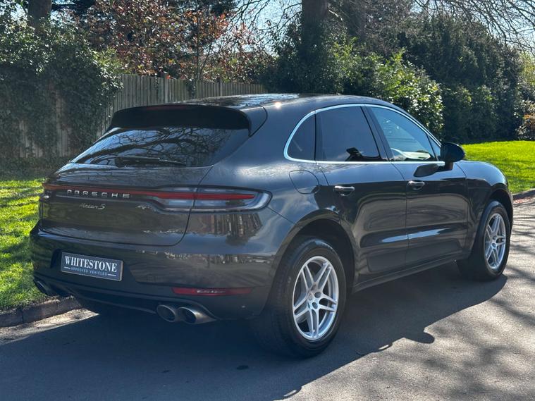 Porsche Macan S 3.0T V6 PDK 4WD (2019) Finished in Volcano Grey Metallic with Brown Leather Interior. Well Maintained With a Full Service History, Specification Includes Porsche Communication Management (PCM) with Navigation and Connect Plus, Bluetooth Connectivity with USB Interface, Cruise Control with Speed Limiter, Lane Departure Warning, Front and Rear Park Assist with Optical and Acoustic Display, Sport Mode with Paddle Shift Controls, Three Zone Climate Control, Heated Front Seats, Multifunction Sports Steering Wheel in Leather, Automatic Tailgate, Rain Sensing Wipers, LED Headlights with Four-Point Daytime Running Lights and LED Rear Light Strip, Privacy Glass, Aluminium Exterior Trim with High Gloss Black Styling Elements, Roof Spoiler, Sideblades in Lava Black, and 18" Macan S Alloy Wheels.