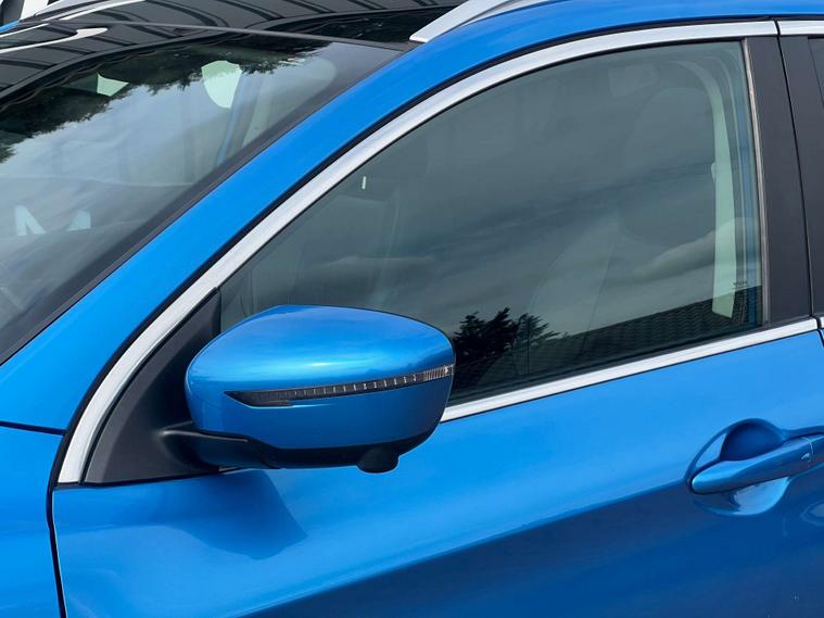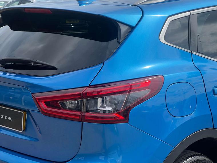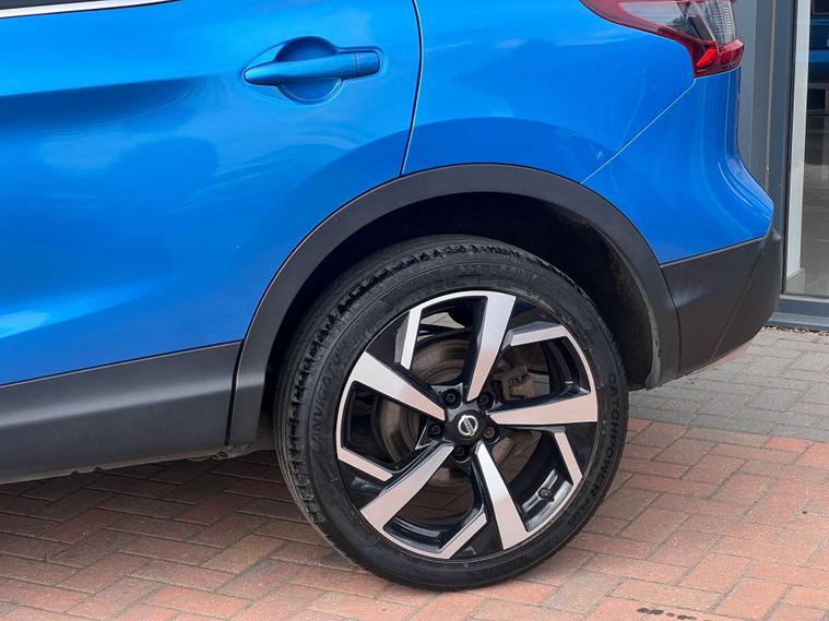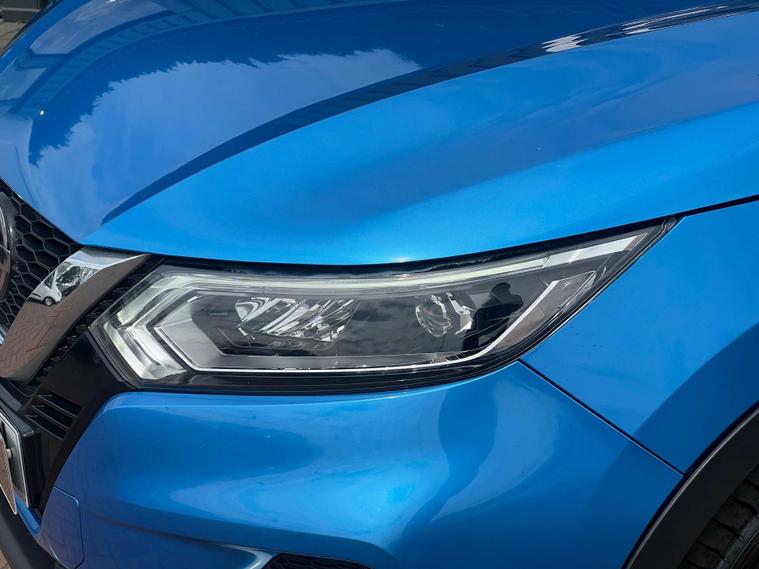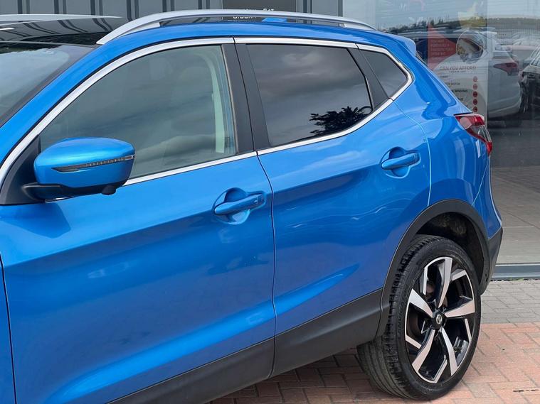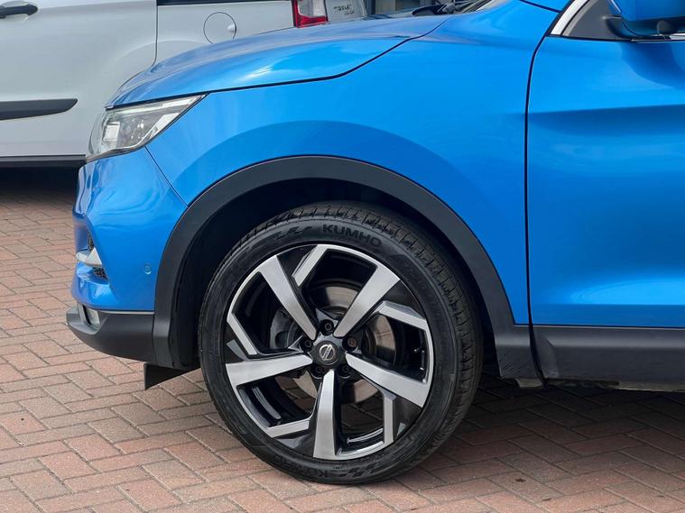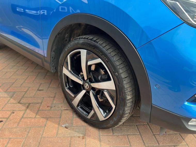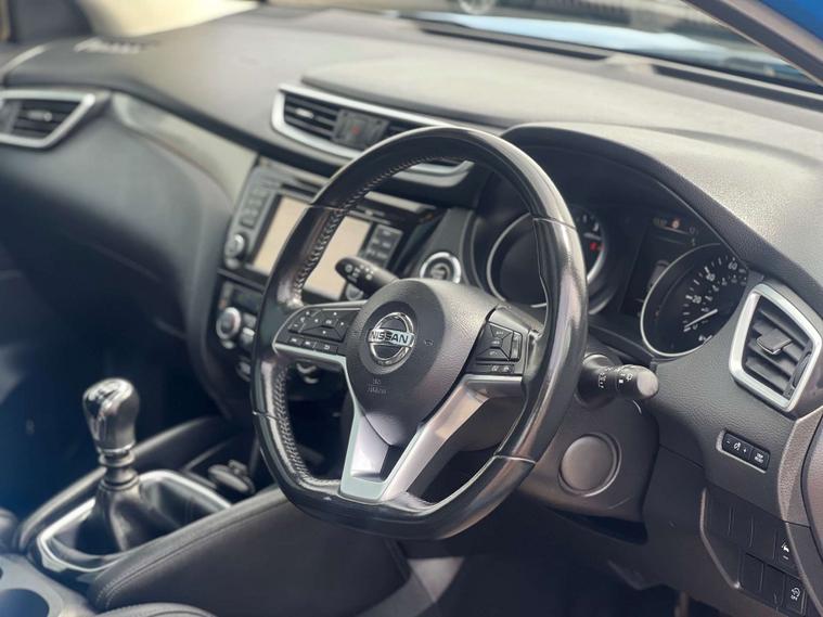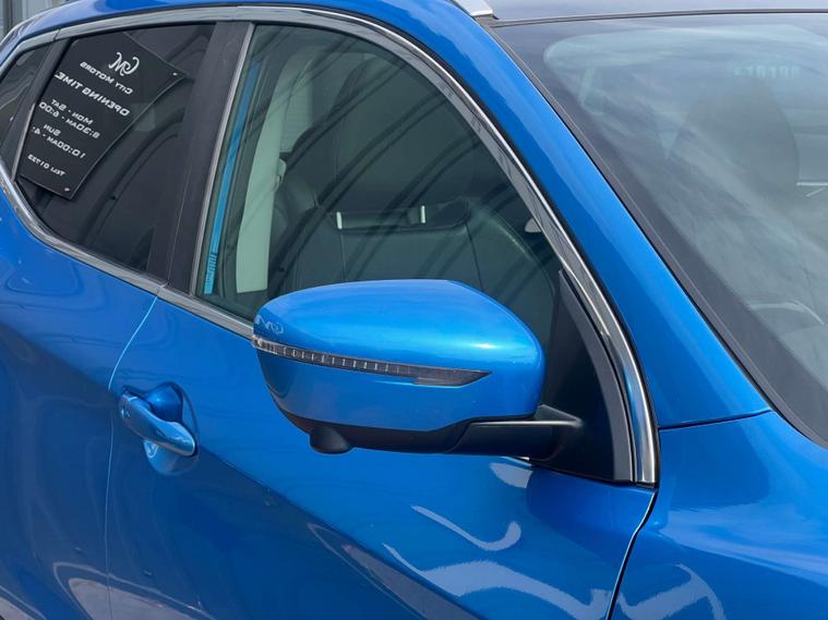 The striking Blue exterior of the Nissan Qashqai is sure to turn heads wherever you go. Its sleek lines and bold design make a statement, while the 19-inch alloy wheels add a touch of elegance and sophistication.