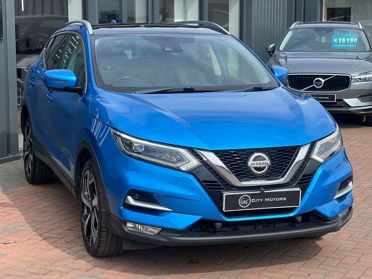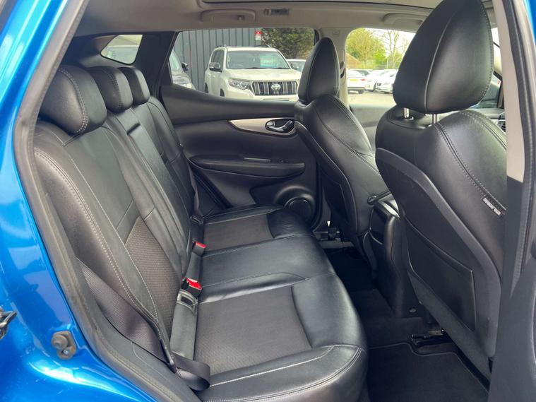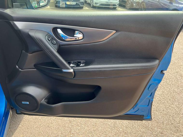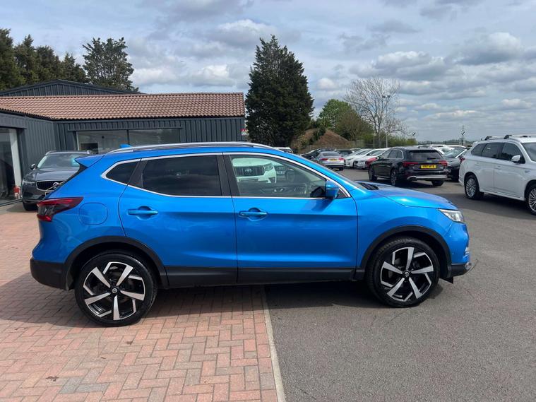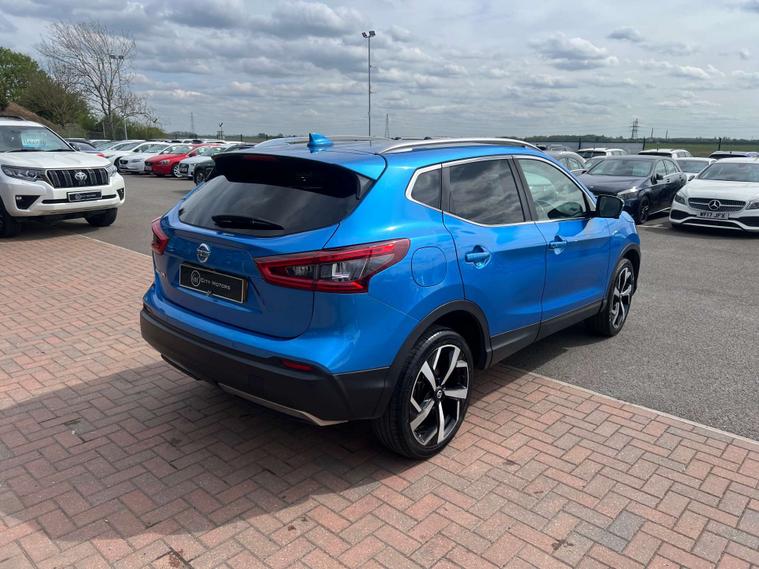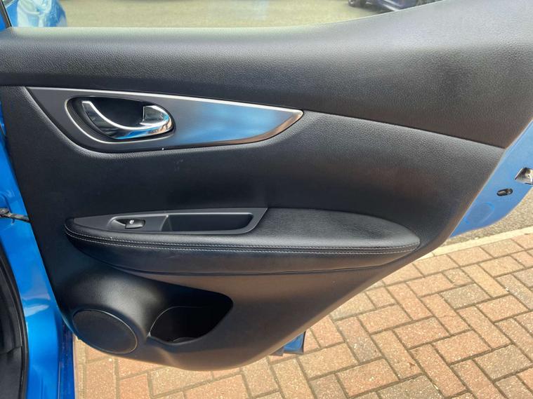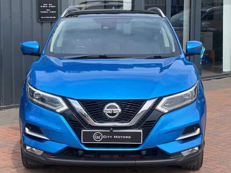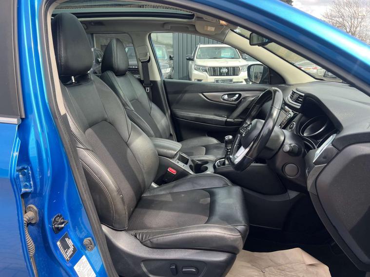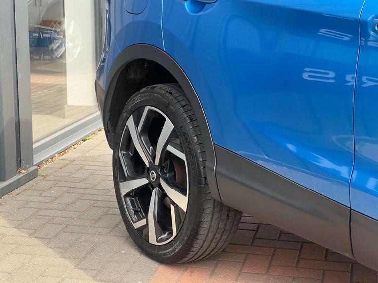 The striking Blue exterior of the Nissan Qashqai is sure to turn heads wherever you go. Its sleek lines and bold design make a statement, while the 19-inch alloy wheels add a touch of elegance and sophistication.