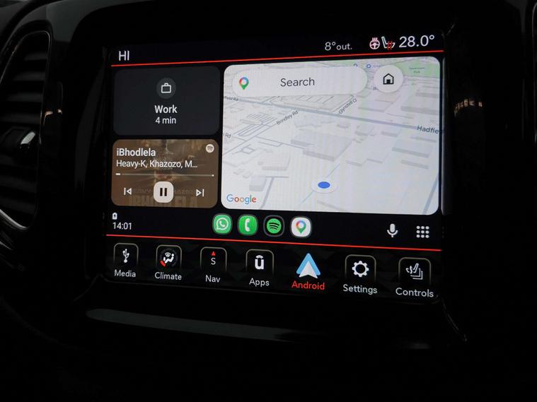 Specification includes Apple CarPlay, Android Auto, Front Heated Seats, Heated Steering Wheel, DAB Digital Radio, Mineral Grey Colour Finish, Blind Spot Monitoring and Cross Path Detection, Cruise Control, Lane Departure Warning Plus, Parallel and Perpendicular Park Assist with Camera, ParkSense Front and Rear Park Assist System, ParkView Rear Back-Up Camera, GPS Navigation System, Bluetooth Interface with Audio Streaming, UConnect 8.4in Touchscreen with USB and AUX, 18in Gloss Black Alloy Wheels, Power Folding Exterior Mirrors, LED Signature Lighting, Daytime Running Lights, Front Fog Lights with Cornering Lights, Convenience Pack, Dual Zone Climate Control, Active Speed Limiting Device, All Speed Traction Control, Keyless Entry N Go, Hill Start Assist.