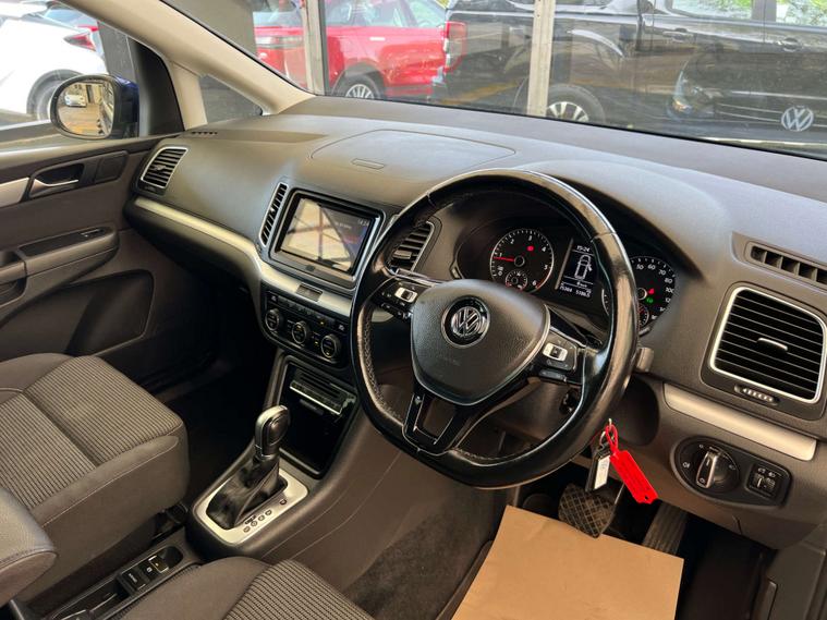 Finished in a stunning Atlantic Blue Metallic, this Sharan is sure to turn heads wherever you go. The sleek exterior is complemented by the Stripes Cloth interior in Titan Black, offering a sophisticated and modern look that is both stylish and functional.