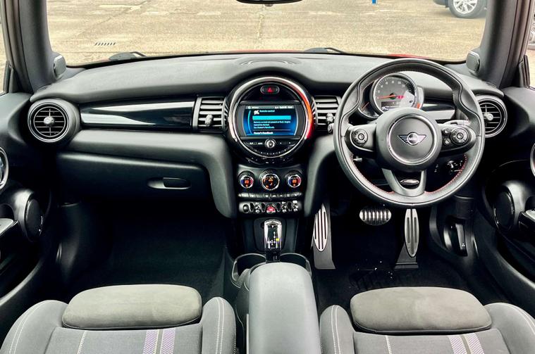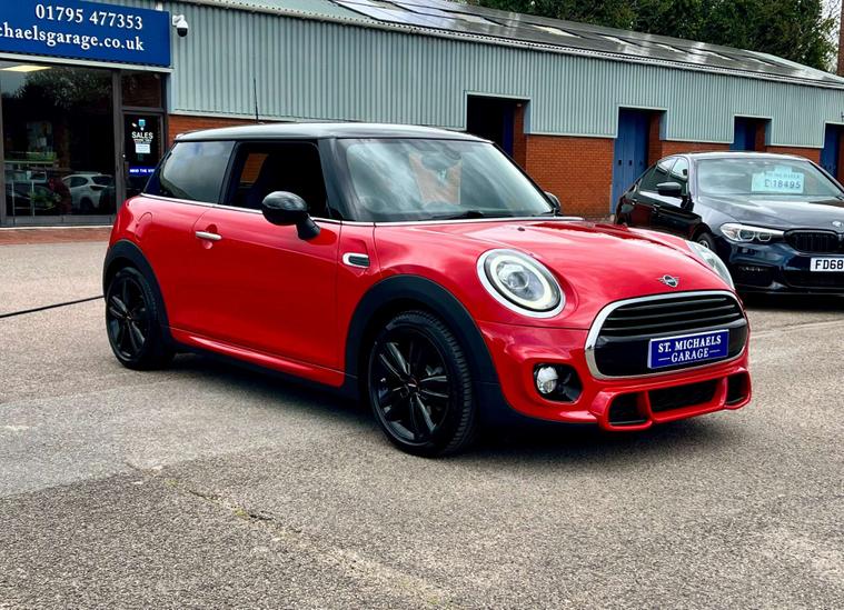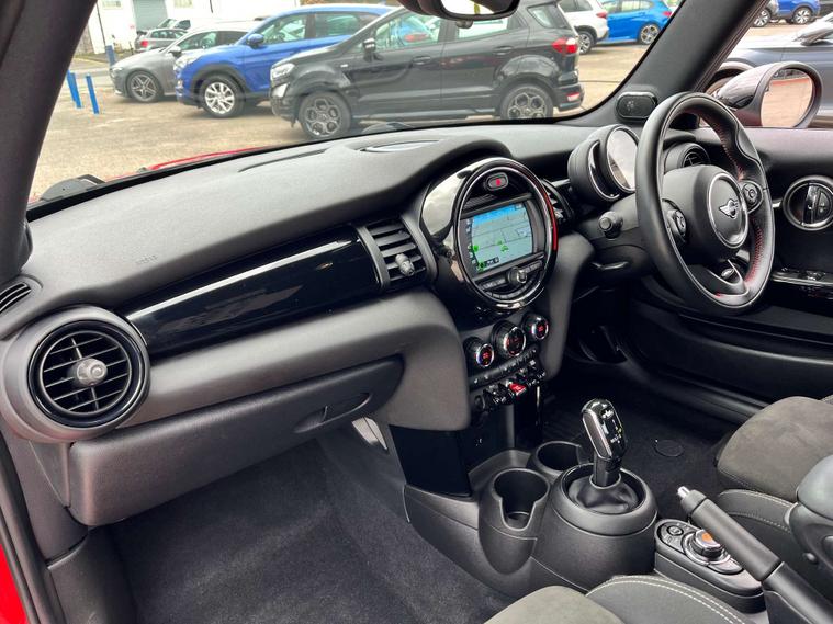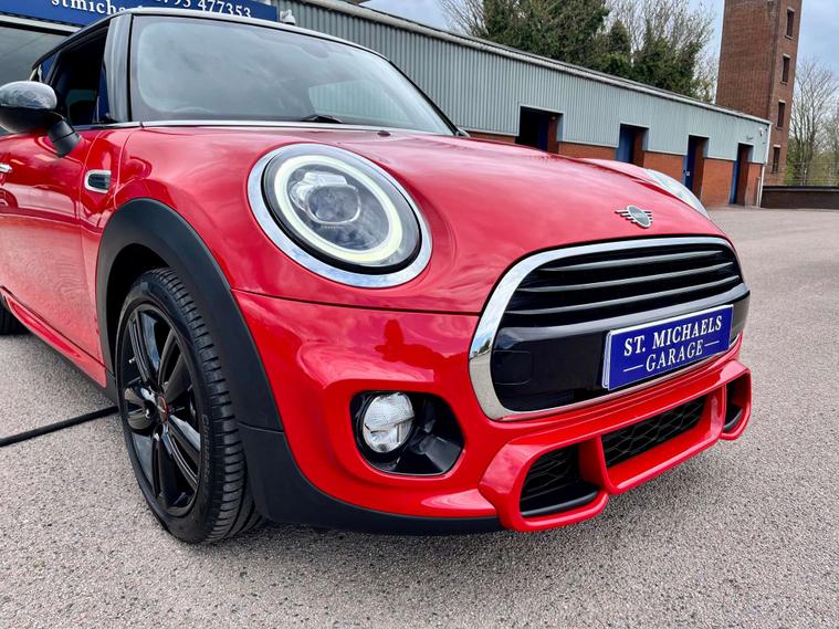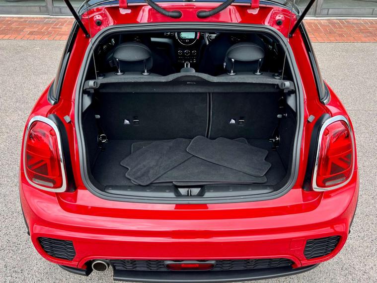 Dressed in a striking Chili Red finish, this Mini Hatch is sure to turn heads wherever you go. The sleek design is complemented by the sophisticated Darkened Rear Glass and the bold contrast of the Black Roof and Mirror Caps, ensuring you make a statement on every journey.