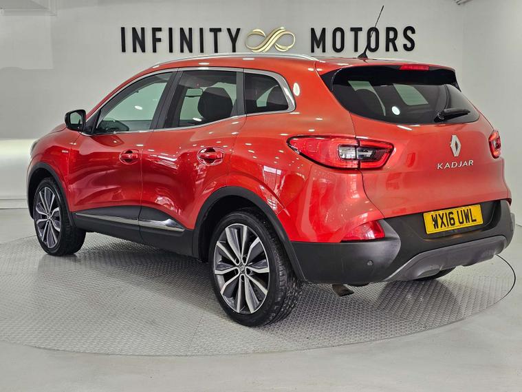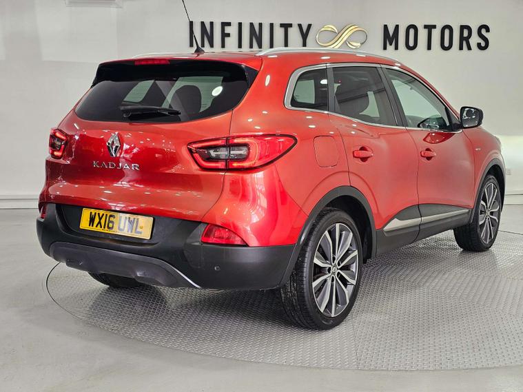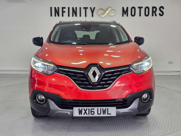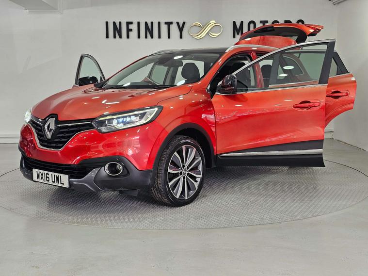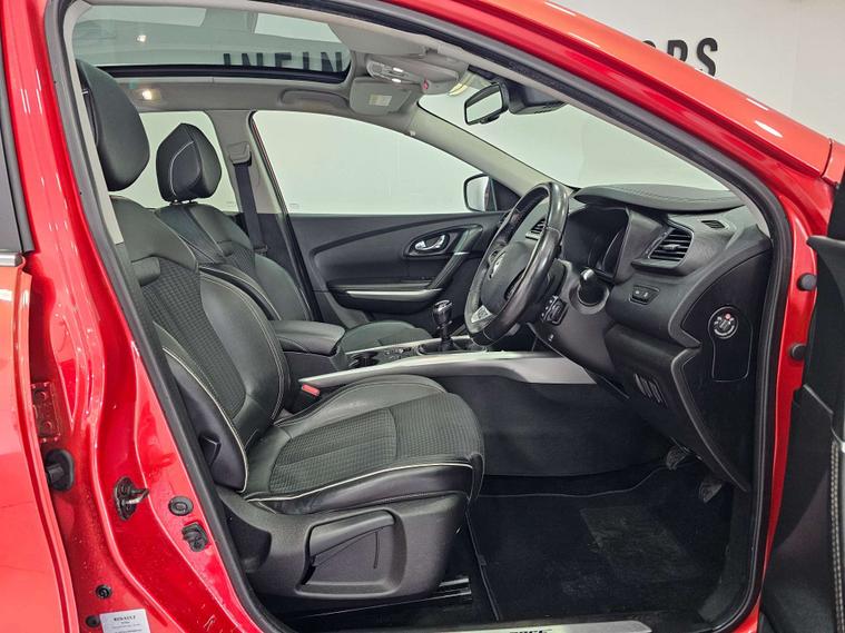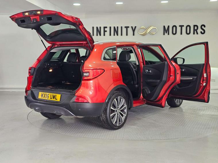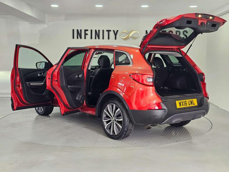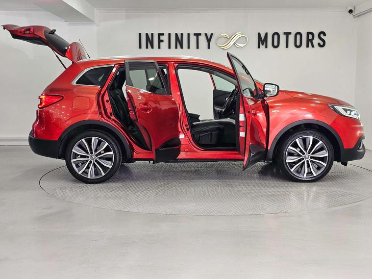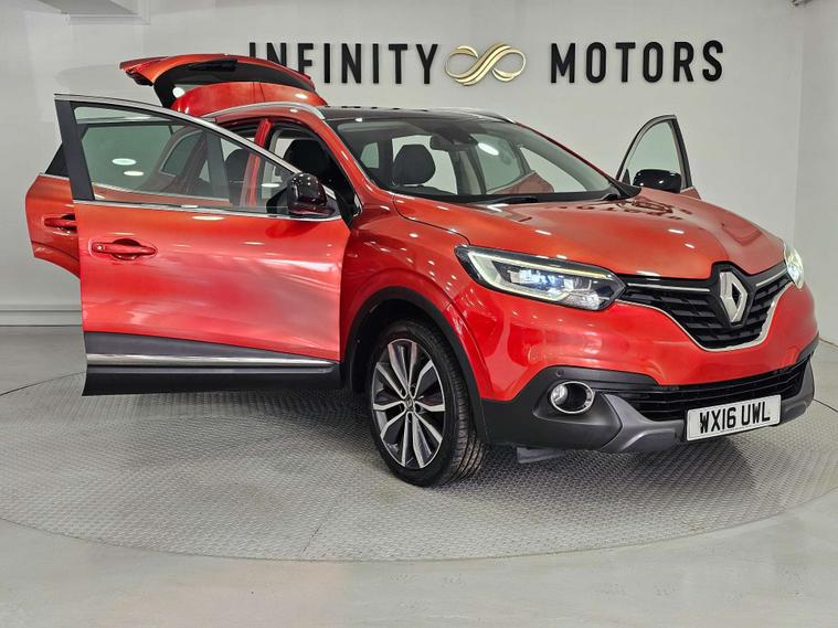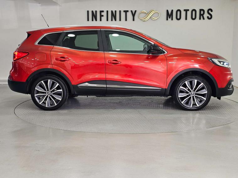 Infinity Motors present the Renault Kadjar, a stylish and versatile SUV that is sure to turn heads wherever you go. This particular model, the 1.6 Kadjar Signature Nav dCi 5dr, is a true standout with its vibrant Flame Red finish.