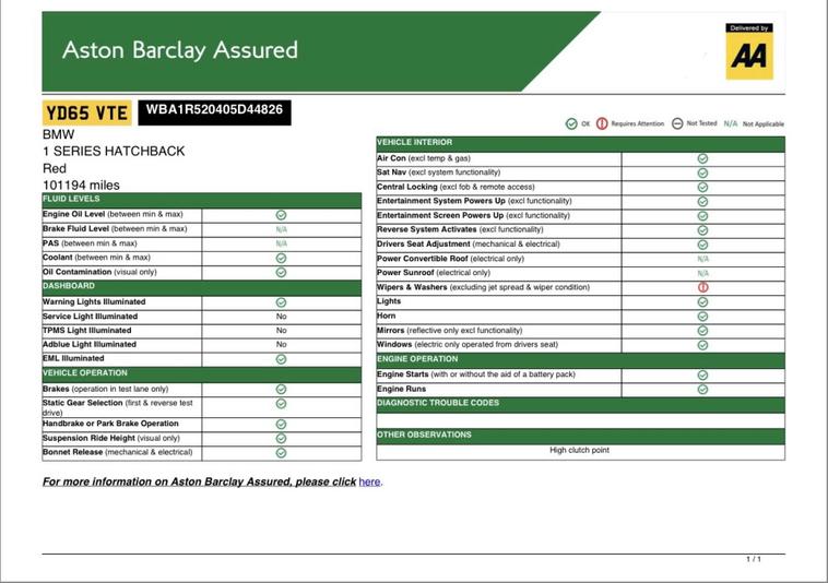 With the Driver Comfort Package and Enhanced Bluetooth Telephone Preparation with USB Audio Interface, this BMW 1 Series is designed to make every journey a pleasure. The Move Cloth - Anthracite with Black Interior adds a touch of luxury to the already impressive features of this vehicle.