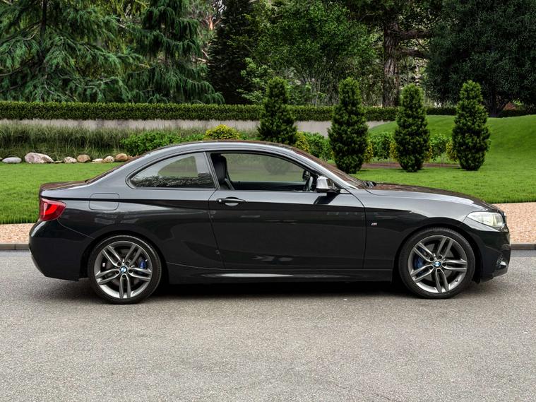 Finished in a sleek Black Sapphire, this Bmw 2 Series exudes sophistication and style. Its striking appearance is further enhanced by the 18-inch M Double Spoke Alloy Wheels in Ferric Grey, and the M Rear Spoiler, which adds a touch of sporty elegance to its dynamic profile.