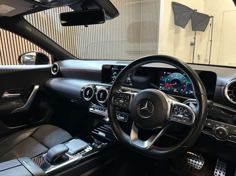 Finished in a striking Black, the A-Class exudes an aura of elegance and power, turning heads wherever it goes. The AMG Line trim adds a touch of sporty flair, with its dynamic design elements and premium features that set it apart from the ordinary.
