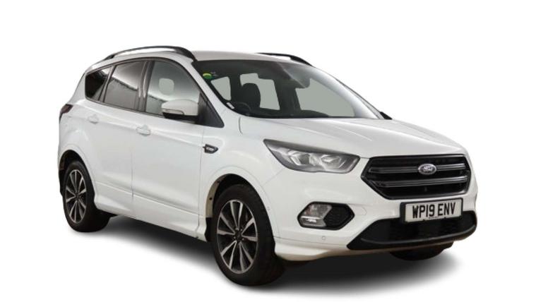 Introducing the Ford Kuga 2.0 TDCi EcoBlue ST-Line SUV, a dynamic and powerful vehicle that is ready to take on any adventure. With a sleek white finish, this SUV is sure to turn heads wherever you go.