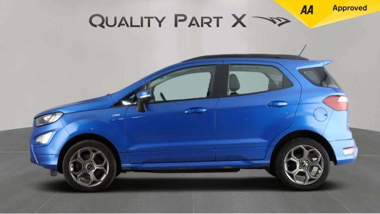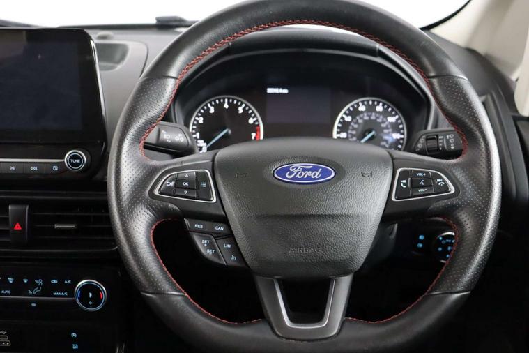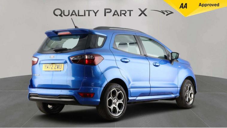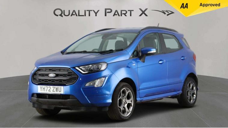 This 2022 Ford EcoSport ST-Line is a superb example, having been owned by just one careful keeper and boasting a clear vehicle history check. This stylish T ST-Line variant is powered by an efficient 1.0L petrol engine, meeting Euro 6 emissions standards. It comes equipped with a host of desirable features, including a Rear View Camera Pack for effortless parking assistance with rear sensors and camera, and LED low beam headlights for enhanced visibility. Inside, you'll find the Ford SYNC 3 Navigation system complete with an 8-inch touchscreen, offering seamless integration with Android Auto and Apple CarPlay. Automatic headlights and electronic automatic temperature control air conditioning ensure a comfortable and convenient driving experience.