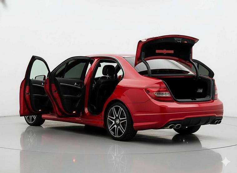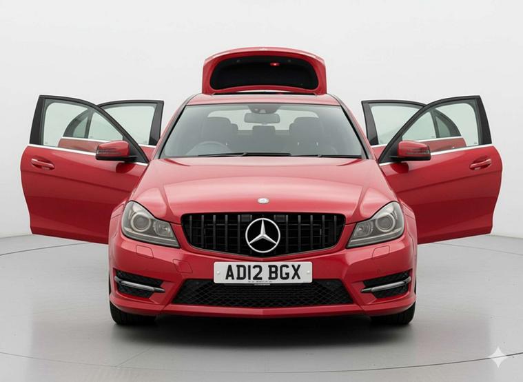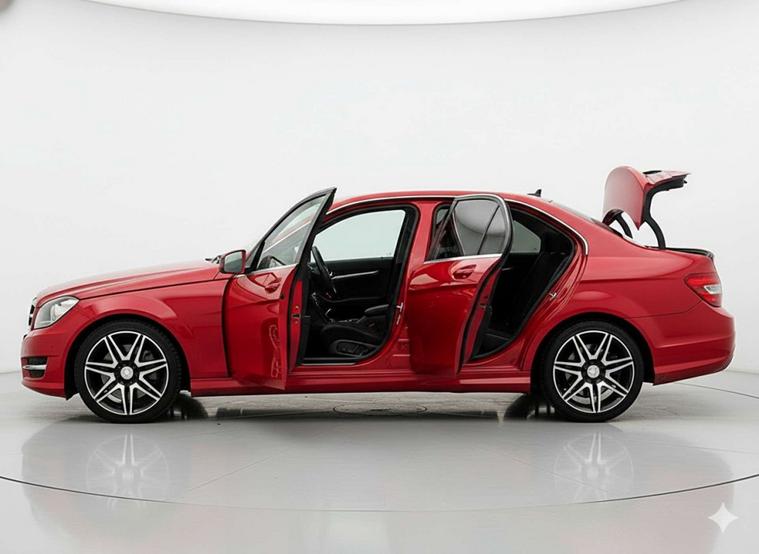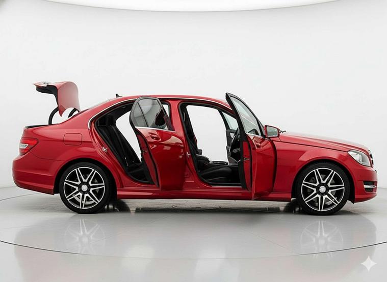 Introducing the stunning Mercedes-Benz C-Class 2.1 C220 AMG Sport+ CDi BlueEfficiency Auto 4dr, finished in a striking Red colour. This luxurious vehicle exudes style and sophistication, perfect for those who appreciate the finer things in life.