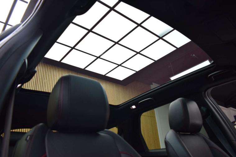 The specification consists of Full black leather trim stitched in red, 7 SEATS, Electric adjustable heated memory front seats, Glass panoramic roof with electric blind, Selectable driving mode, Hill decent, Traction control, Digital climate control, air conditioning, Rapid de-ice front screen, Colour touch screen multi media system, Apple car play, Android auto, Satellite navigation, Bluetooth, DAB, 2 x USB, Leather bound multi function steering wheel, Voice command, Heated steering wheel, Cruise control, Speed limiter, Lane keep assist, Blind spot monitor, Auto lights, Auto wipers, Electric adjustable folding mirrors, Remote central locking, Keyless go, Electric windows x 4, Electric tailgate, Reversing camera, Front & Rear parking sensors, Rear isofix seats, Rear charging point, 20" Metallic Silver Alloy wheels and Privacy glass.