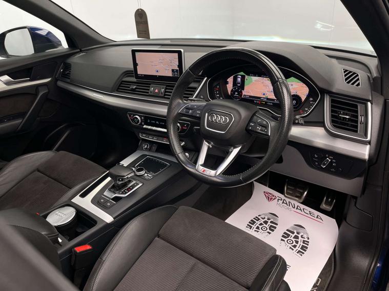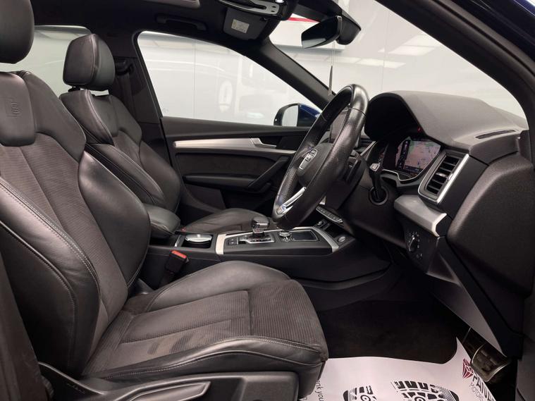 REF : AUDI Q5 2.0 TDI 40 S LINE SUV 5DR DIESEL S TRONIC QUATTRO EURO 6 190BHP FINISHED IN STUNNING BLUE WITH FULL BLACK LEATHER INTERIOR. THIS HIGH SPECIFICATION EXAMPLE BOASTS THE 1 PREV OWNER FROM BRAND NEW AND A FULL SERVICE RECORD EQUIPPED WITH OVER £10K OF FACTORY EXTRAS WHICH INCLUDE | TILT AND SLIDE PANORAMIC GLASS ROOF | AUDI VIRTUAL COCKPIT | FULL BLACK LEATHER SEATS | 19INCH ALLOY WHEELS | TECHNOLOGY PACK | KEYLESS START | ELECTRIC OPENING TAIL GATE | HEATED FRONT SEATS | PRO NAVIGATION | FRONT AND REAR PARKING SENSORS | HEATED AND FOLDING MIRRORS | APPLE CAR PLAY | ANDROID AUTO | DAB | PRIVACY GLASS | BE FAST - A RARE FIND IN THIS SPECIFICATION AND NOT TO BE MISSED.... Further to this all vehicles are provided with a comprehensive AA Dealer Care Extended Guarantee and Full AA Roadside, Recovery and Home Start & Onward travel (where not covered under the manufactures own warranty). HPI checks are carried out making sure all cars are clear from any concern, offering you total piece of mind. Every vehicle's mileage is fully guaranteed as genuine. Included with your purchase you will receive a minimum of 3 months Warranty with the option to extended and tailor your package at the time of purchase. Our vehicles are supplied fully valeted to the highest standards and include up to date servicing with a minimum of 9 months MOT. We are regulated by the FCA and can provide a range of flexible finance options, tailoring a package to your needs. We aim to a make the numbers work for you, including 0% deposit deals! We also offer a selection of other products for our customers to protect their investment. These include Williams Ceramic coating, insurance backed policies to protect your investment from financial loss and protection to cosmetic damage. To avoid disappointment please call 01616237517 to arrange a test drive before travelling.