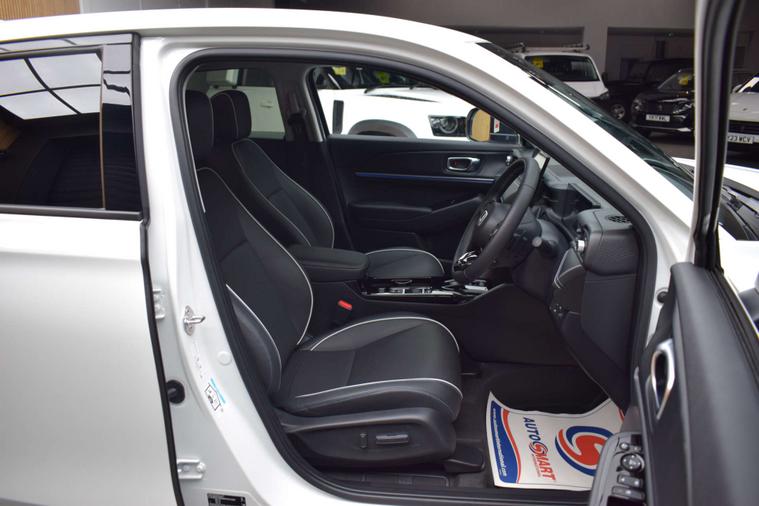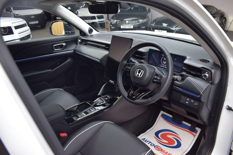 Full Black leather trim pipped in silver with blue stitching, electric adjustable drivers seat, Heated seats, Auto hold, Selectable driving mode, Wireless charging, Touch screen climate control, Air conditioning, Colour touch screen multi media system, Wireless Apple car play , Android auto, Satellite navigation, Bluetooth, USB, DAB, Virtual cockpit, Full Honda safety suite, Leather bound multi function steering wheel, Voice command, Paddle shift, Adaptive cruise control, Speed limiter, Lane keep assist, Blind spot monitor, Remote central locking, Keyless go, Electric adjustable heated folding mirrors, Electric windows, Reversing camera, Front & Rear parking sensors, 18" Diamond cut alloy wheels, Privacy glass,