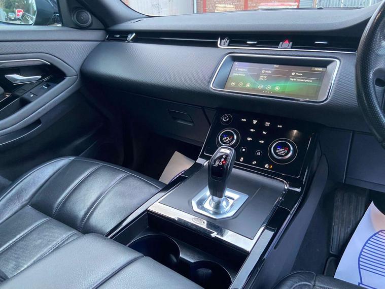 This 2019 Land Rover Range Rover Evoque D180 R Dynamic S offers a refined driving experience with its Euro 6 compliant 2.0L diesel engine and Four Wheel Drive system. This R Dynamic S variant is equipped with 10 way heated electric front seats for ultimate comfort, along with Two Zone Climate Control to ensure a pleasant cabin temperature for all occupants. Navigating tight spaces is made easier with a Rear View Camera and Front and Rear Parking Aid, while seamless smartphone integration is provided through Android Auto.