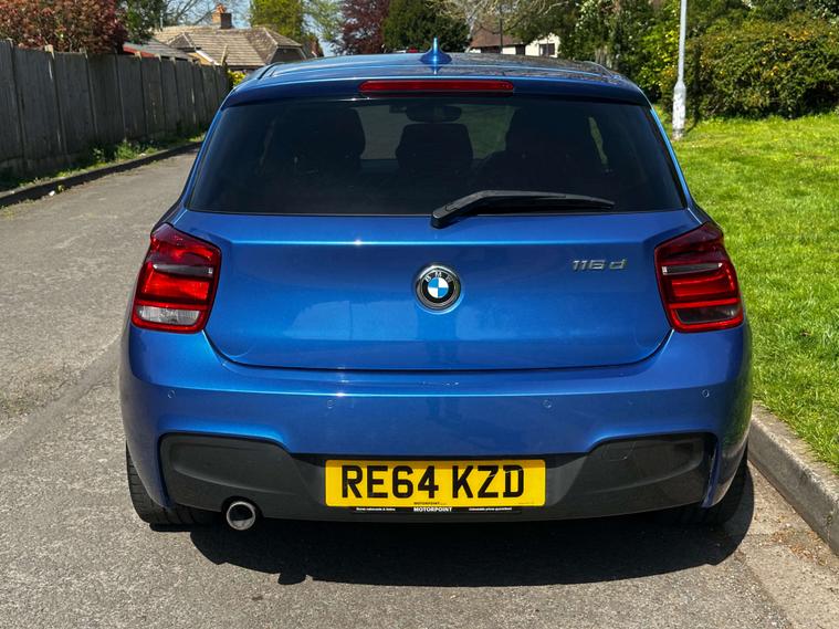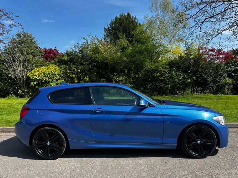 Finished in Estoril Blue Metallic With Black Dakota Leather Interior. This BMW 116d M Sport 3 Door Features Bluetooth Handsfree With USB Audio, DAB Radio, Automatic Air Conditioning, Multifunction Steering Wheel, Rear Parking Sensors, Cruise Control, Xenon Headlights, Rain Sensing Wipers, Sun Protection Glass, Drive Performance Modes, 12V Power Sockets and 18 Inch M Star Spoke Alloy Wheels.