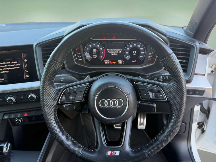 Introducing the stylish Audi A1 Sportback 30 TFSI S Line Semi-Auto 5dr. This sleek vehicle has had 3 owners and is finished in a stunning White colour, with eye-catching extras including a Contrast Roof in Mythos Black Metallic, 17-inch Alloy Wheels in a striking 5-Spoke Design in Black, a Technology Pack for added convenience, and a luxurious 3-Spoke Leather Multifunction Flat Bottomed Steering Wheel.