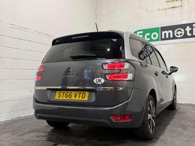 Discover this exceptional 2017 Citroen Grand C4 Picasso BlueHDi Flair, boasting remarkably low mileage for its age at just 59, 625 miles, a clear vehicle history check, and a fuel economy that stands out at an impressive 71 mpg. This Euro 6 compliant 1.6 litre diesel engine ensures efficiency, while the Flair trim level offers a wealth of desirable features. Inside, you'll find a spacious cabin with seven seats, perfect for families, complemented by a fixed panoramic sunroof that floods the interior with light. Convenience is key with keyless entry and start, a reversing camera for easier parking, and air conditioning for the third row, ensuring comfort for all passengers.