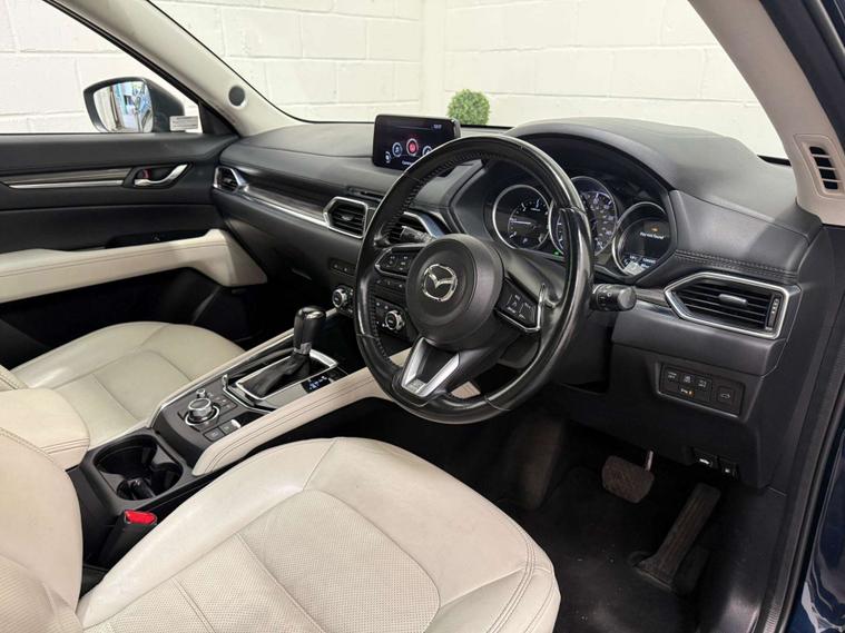 Discover this 2018 Mazda CX-5 SKYACTIV-D Sport Nav, a well presented example of this popular SUV. This Four Wheel Drive model is powered by an efficient 2.2 litre diesel engine and meets Euro 6 emissions standards. Inside, you'll find a comfortable cabin featuring dual zone climate control, heated front seats with three stage settings, and a power tilt and slide sunroof for an airy feel. Convenience is enhanced with a smart remote keyless entry system and a reversing camera to aid parking.