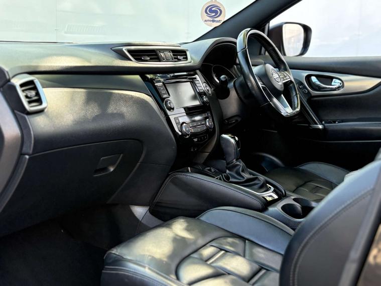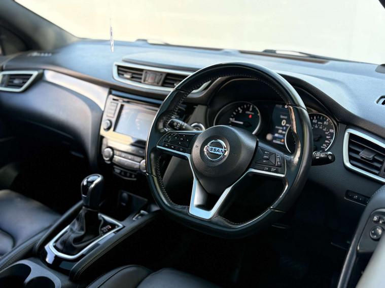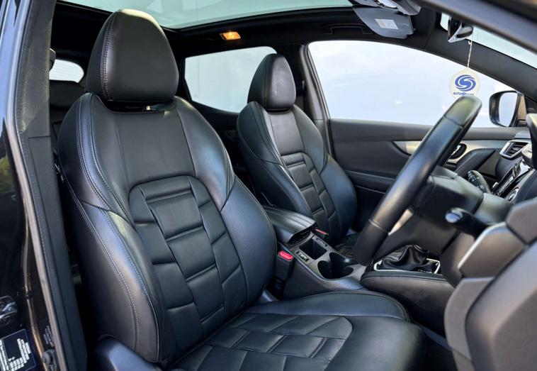 Finished in a sleek and sophisticated Pearl Black, the Nissan Qashqai exudes an air of elegance and authority on the road. Its striking exterior is perfectly complemented by the luxurious interior, featuring sumptuous Nappa Leather with 3D Quilted detailing in Black. This is not just a car; it's a statement of refined taste and unparalleled quality.