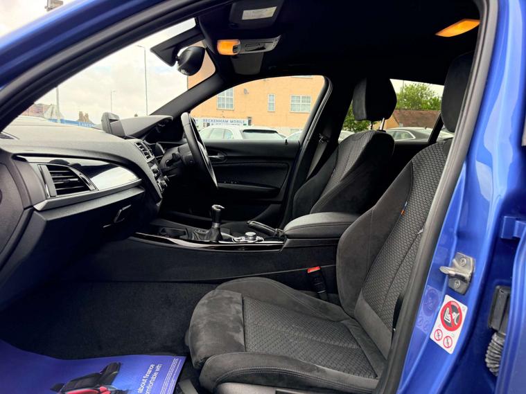 Finished in a striking Estoril Blue, this Bmw 1 Series is sure to turn heads wherever you go. The exterior is complemented by a sophisticated interior featuring Hexagon Cloth-Alcantara in Anthracite with a sleek Black Interior. The High-Gloss Black Interior Trim with Oxide Silver Finisher adds an extra touch of elegance to the cabin.