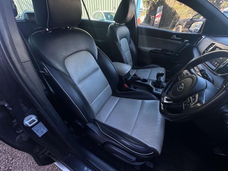 High-spec GT-Line features include Apple CarPlay, reverse camera, heated front and rear seats, two-tone leather interior, Bluetooth connectivity, cruise control, lane assist, and air conditioning.