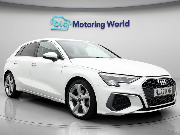 Our Audi A3 is finished in White. Specification includes a range of fantastic features including 18'' alloy wheels, Leather Seats, Apple CarPlay, Lane Assist, S Line Body Styling, Android Auto, Privacy Glass, Bluetooth, Parking Sensors, Audi Connect Specification information is supplied by CAPHPI and may vary to the actual car. This data does not form any part of a buying contact. Please check specification prior to purchase in-store. The MOT is valid until April 2026, visit dealer's website for more photos, a 360 tour, service history and a free HPI report.