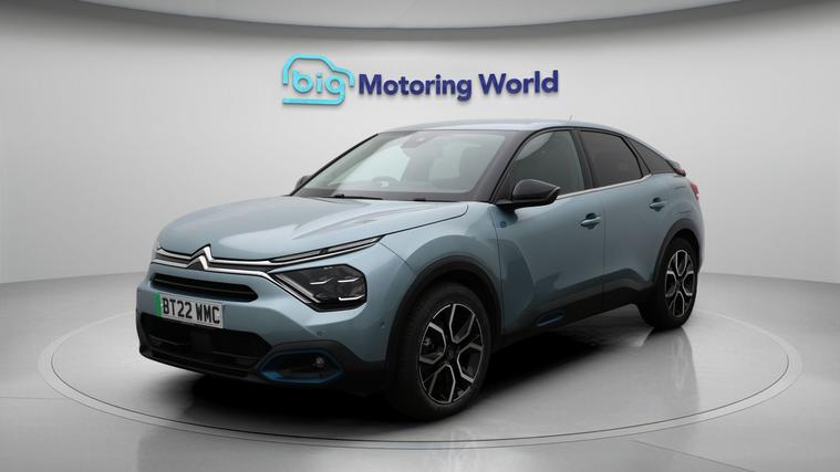 Our Citroen e-C4 is finished in Blue. Specification includes a range of fantastic features including Head up Display, 18'' alloy wheels, Leather Seats, Apple CarPlay, Android Auto, Satellite Navigation, Heated Seats, Rear View Camera, Heated Steering Wheel, Bluetooth Specification information is supplied by CAPHPI and may vary to the actual car. This data does not form any part of a buying contact. Please check specification prior to purchase in-store. The MOT is valid until September 2026, visit dealer's website for more photos, a 360 tour, service history and a free HPI report.