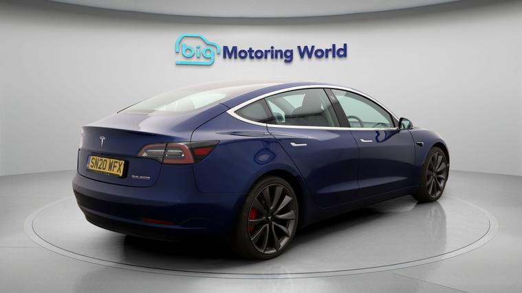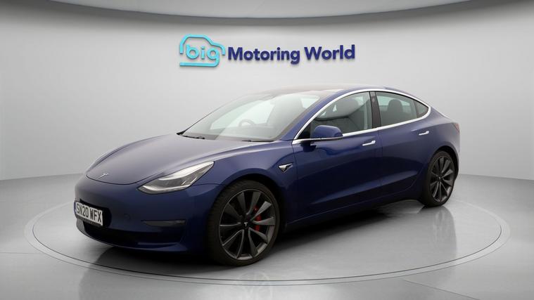 Our Tesla Model 3 is finished in Blue. Specification includes a range of fantastic features including £500 Deposit Contribution, All Wheel Drive, 20'' Alloy Wheels, Leather Seats, Adaptive Cruise Control, Satellite Navigation, Heated Seats, Wireless Phone Charging, Rear View Camera, Heated Rear Seats Specification information is supplied by CAPHPI and may vary to the actual car. This data does not form any part of a buying contact. Please check specification prior to purchase in-store. The MOT is valid until May 2026, visit dealer's website for more photos, a 360 tour, service history and a free HPI report.