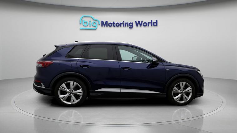 Our Audi Q4 e-tron is finished in Blue. Specification includes a range of fantastic features including 20'' Alloy Wheels, Part Leather Seats, Apple CarPlay, Lane Assist, S Line Body Styling, Android Auto, Satellite Navigation, Privacy Glass, Heated Seats, Bluetooth Specification information is supplied by CAPHPI and may vary to the actual car. This data does not form any part of a buying contact. Please check specification prior to purchase in-store. The MOT is valid until August 2026, visit dealer's website for more photos, a 360 tour, service history and a free HPI report.