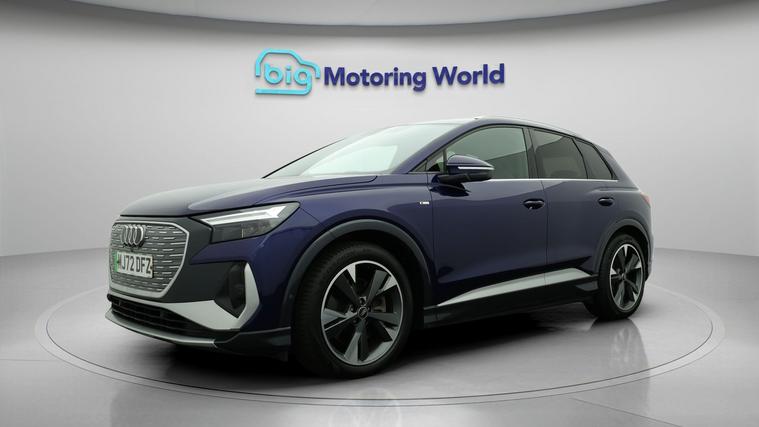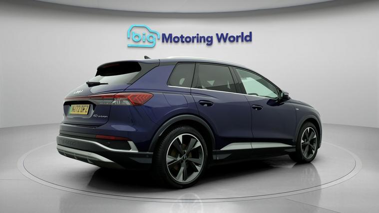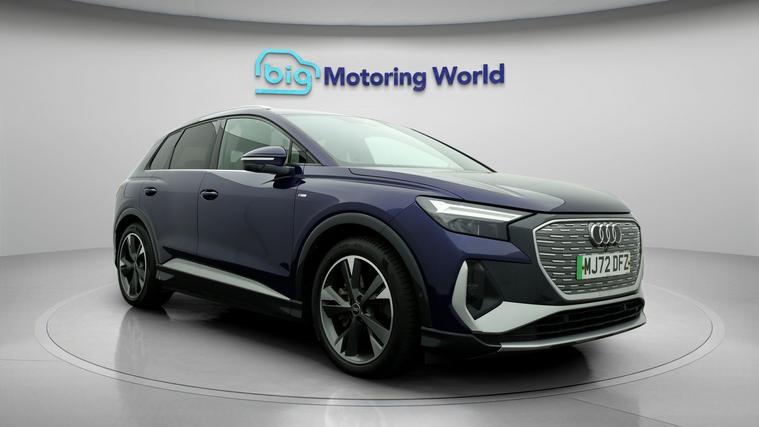 Our Audi Q4 e-tron is finished in Blue. Specification includes a range of fantastic features including Part Leather Seats, Lane Assist, S Line Body Styling, Satellite Navigation, Privacy Glass, Heated Seats, Rear View Camera, Bluetooth, Parking Sensors, Audi Connect Specification information is supplied by CAPHPI and may vary to the actual car. This data does not form any part of a buying contact. Please check specification prior to purchase in-store. The MOT is valid until October 2026, visit dealer's website for more photos, a 360 tour, service history and a free HPI report.