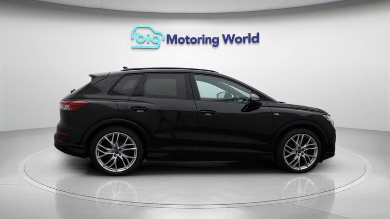 Our Audi Q4 e-tron is finished in Black. Specification includes a range of fantastic features including Part Leather Seats, Apple CarPlay, Lane Assist, S Line Body Styling, Android Auto, Satellite Navigation, Privacy Glass, Heated Seats, Rear View Camera, Memory Seats Specification information is supplied by CAPHPI and may vary to the actual car. This data does not form any part of a buying contact. Please check specification prior to purchase in-store. The MOT is valid until August 2026, visit dealer's website for more photos, a 360 tour, service history and a free HPI report.