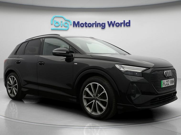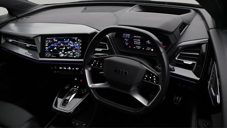 Our Audi Q4 e-tron is finished in Black. Specification includes a range of fantastic features including Apple CarPlay, Android Auto, Satellite Navigation, Privacy Glass, Heated Seats, Rear View Camera, Memory Seats, Bluetooth, Parking Sensors, Audi Connect Specification information is supplied by CAPHPI and may vary to the actual car. This data does not form any part of a buying contact. Please check specification prior to purchase in-store. The MOT is valid until July 2026, visit dealer's website for more photos, a 360 tour, service history and a free HPI report.