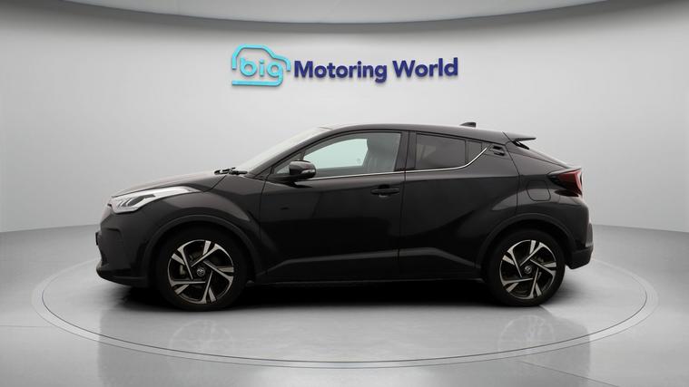 Our Toyota C-HR is finished in Black. Specification includes a range of fantastic features including Adaptive Cruise Control, Lane Assist, Satellite Navigation, Privacy Glass, Heated Seats, Rear View Camera, Bluetooth, Parking Sensors, Ambient Lighting, Wi-Fi Hot Spot Prep Specification information is supplied by CAPHPI and may vary to the actual car. This data does not form any part of a buying contact. Please check specification prior to purchase in-store. The MOT is valid until April 2026, visit dealer's website for more photos, a 360 tour, service history and a free HPI report.