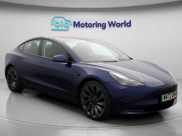 Our Tesla Model 3 is finished in Blue. Specification includes a range of fantastic features including FREE £750 towards your finance Deposit, All Wheel Drive, 20'' Alloy Wheels, Leather Seats, Adaptive Cruise Control, Satellite Navigation, Heated Seats, Wireless Phone Charging, Rear View Camera, Heated Rear Seats Specification information is supplied by CAPHPI and may vary to the actual car. This data does not form any part of a buying contact. Please check specification prior to purchase in-store. The MOT is valid until October 2026, visit dealer's website for more photos, a 360 tour, service history and a free HPI report.