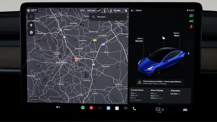 Our Tesla Model 3 is finished in Blue. Specification includes a range of fantastic features including FREE £750 towards your finance Deposit, All Wheel Drive, Panoramic Roof, 18'' alloy wheels, Leather Seats, Adaptive Cruise Control, Satellite Navigation, Heated Seats, Wireless Phone Charging, Rear View Camera Specification information is supplied by CAPHPI and may vary to the actual car. This data does not form any part of a buying contact. Please check specification prior to purchase in-store. The MOT is valid until October 2026, visit dealer's website for more photos, a 360 tour, service history and a free HPI report.