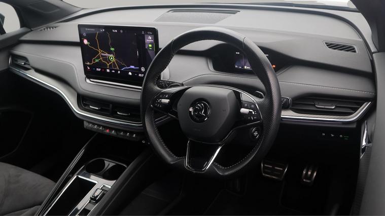 Our Skoda Enyaq is finished in Black. Specification includes a range of fantastic features including Part Leather Seats, Apple CarPlay, Android Auto, Satellite Navigation, Privacy Glass, Heated Seats, Gesture Control, Rear View Camera, Heated Steering Wheel, Bluetooth Specification information is supplied by CAPHPI and may vary to the actual car. This data does not form any part of a buying contact. Please check specification prior to purchase in-store. The MOT is valid until August 2026, visit dealer's website for more photos, a 360 tour, service history and a free HPI report.