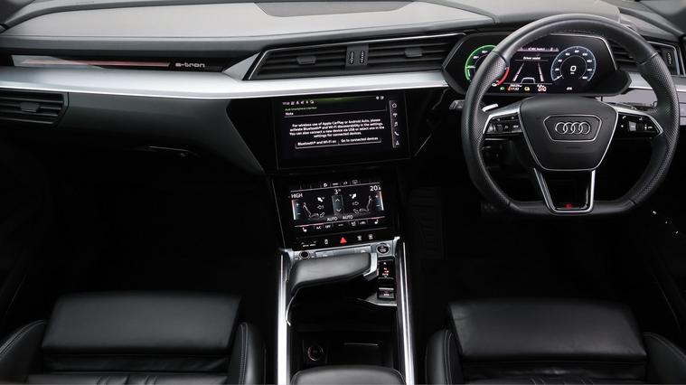 Our Audi e-tron is finished in Black. Specification includes a range of fantastic features including All Wheel Drive, Leather Seats, Air Suspension, Digital Cockpit, Privacy Glass, Heated Seats, Virtual Cockpit, Rear View Camera, Bluetooth, Parking Sensors Specification information is supplied by CAPHPI and may vary to the actual car. This data does not form any part of a buying contact. Please check specification prior to purchase in-store. The MOT is valid until September 2026, visit dealer's website for more photos, a 360 tour, service history and a free HPI report.