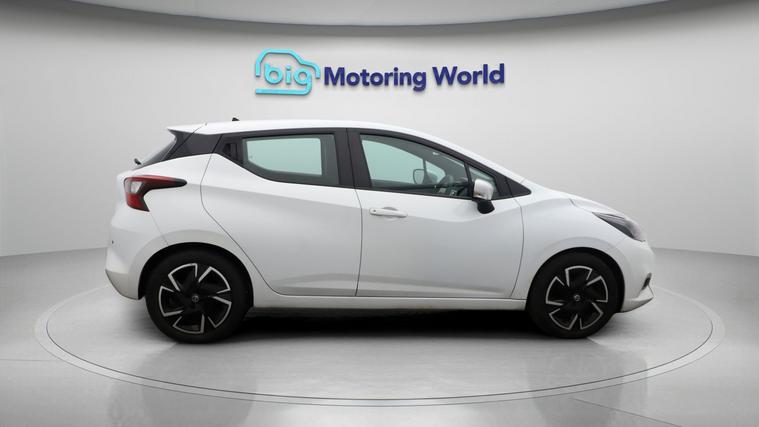 Our Nissan Micra is finished in White. Specification includes a range of fantastic features including Bluetooth, Parking Sensors, Cruise Control, Climate Control, Voice Control, DAB Radio , Ipod Connectivity, Touch Screen Control, LED daytime running lights, Multi Function Steering Wheel Specification information is supplied by CAPHPI and may vary to the actual car. This data does not form any part of a buying contact. Please check specification prior to purchase in-store. The MOT is valid until October 2026, visit dealer's website for more photos, a 360 tour, service history and a free HPI report.