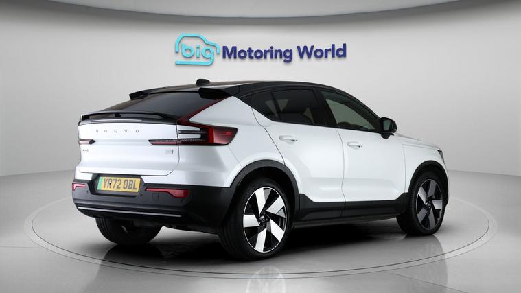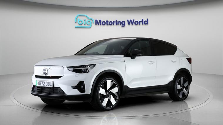 Our Volvo C40 is finished in White. Specification includes a range of fantastic features including Panoramic Roof, 20'' Alloy Wheels, Adaptive Cruise Control, Apple CarPlay, Harman Kardon Speakers, Premium Sound System, Privacy Glass, Heated Seats, Gesture Tailgate, Rear View Camera Specification information is supplied by CAPHPI and may vary to the actual car. This data does not form any part of a buying contact. Please check specification prior to purchase in-store. The MOT is valid until August 2026, visit dealer's website for more photos, a 360 tour, service history and a free HPI report.