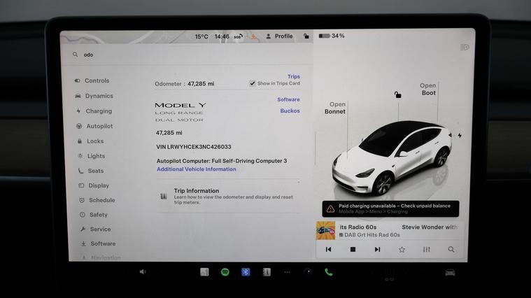 Our Tesla Model Y is finished in White. Specification includes a range of fantastic features including FREE £750 towards your finance Deposit, All Wheel Drive, Leather Seats, Satellite Navigation, Privacy Glass, Heated Seats, Wireless Phone Charging, Rear View Camera, Heated Rear Seats, Heated Steering Wheel Specification information is supplied by CAPHPI and may vary to the actual car. This data does not form any part of a buying contact. Please check specification prior to purchase in-store. The MOT is valid until October 2026, visit dealer's website for more photos, a 360 tour, service history and a free HPI report.