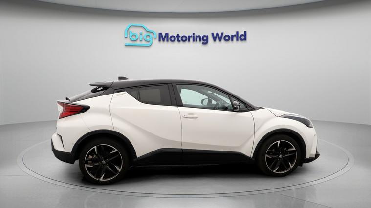 Our Toyota C-HR is finished in White/Black. Specification includes a range of fantastic features including 19'' Alloy wheels, Adaptive Cruise Control, Lane Assist, Satellite Navigation, Privacy Glass, Heated Seats, Rear View Camera, Bluetooth, Parking Sensors, Adaptive LED Headlights Specification information is supplied by CAPHPI and may vary to the actual car. This data does not form any part of a buying contact. Please check specification prior to purchase in-store. The MOT is valid until July 2026, visit dealer's website for more photos, a 360 tour, service history and a free HPI report.