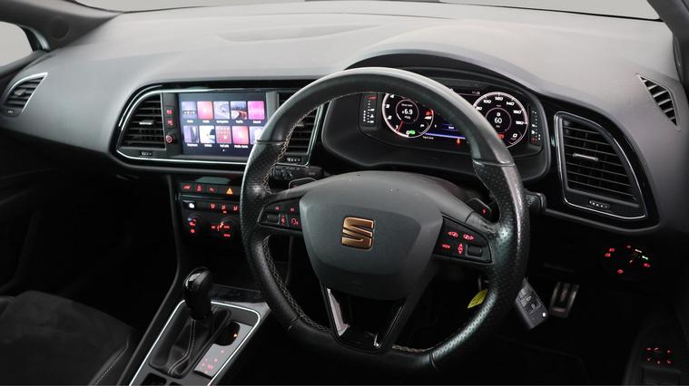 Our SEAT Leon is finished in Grey. Specification includes a range of fantastic features including Dynamic Chassis Control, 19'' Alloy wheels, Part Leather Seats, Apple CarPlay, Android Auto, Privacy Glass, Bluetooth, Parking Sensors, Ambient Lighting, Flat Bottom Steering Wheel Specification information is supplied by CAPHPI and may vary to the actual car. This data  does not form any part of a buying contact. Please check specification prior to purchase in-store. The MOT is valid until June 2026, visit dealer's website for more photos, a 360 tour, service history and a free HPI report.