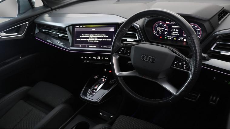 Our Audi Q4 e-tron is finished in Grey. Specification includes a range of fantastic features including Part Leather Seats, Apple CarPlay, Premium Sound System, Lane Assist, S Line Body Styling, Android Auto, Satellite Navigation, Privacy Glass, Heated Seats, Rear View Camera Specification information is supplied by CAPHPI and may vary to the actual car. This data does not form any part of a buying contact. Please check specification prior to purchase in-store. The MOT is valid until October 2026, visit dealer's website for more photos, a 360 tour, service history and a free HPI report.